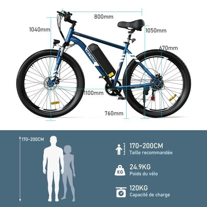| Nome del prodotto | HITWAY bicicletta elettrica VAE Blu, e-MTB, 26″ x 3.0 City E-Bike, Batteria al Litio Rimovibile 48V15AH, Shimano 7 Velocità |